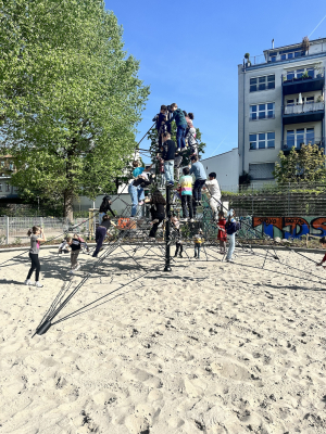 Besonders beliebt sind die neuen Spielgeräte: Die Kletterspinne, die Rutsche und die Balancierhölzer laden zum Spielen, Klettern und Ausprobieren ein. Auch die vielfältige Gestaltung des gesamten Schulhofs sorgt für Abwechslung und bietet Bewegungs- und Rückzugsräume für alle Kinder.
