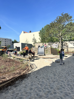 Ende April war es endlich so weit: Die Bauzäune wurden abgebaut und unser neu gestalteter Schulhof konnte in Betrieb genommen werden. Bei strahlendem Sonnenschein erlebten wir eine besondere erste Pause – ein Moment, auf den viele lange gewartet hatten.