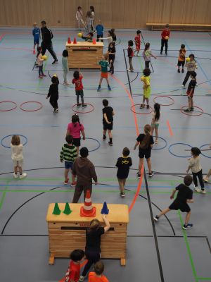 Ab Dienstag ging es dann in der Sporthalle sportlich weiter. In der Schneeballschlacht, beim Biathlon, Eishockey, Bobfahren, Curling, Skispringen oder Eiskunstlauf konnten die Kinder neue Bewegungsformen ausprobieren, kleine Wettkämpfe bestreiten und vor allem viel Spaß haben. Die Hallen waren erfüllt von Energie, Lachen und sportlichem Ehrgeiz, immer begleitet von Fairness und gegenseitiger Unterstützung.